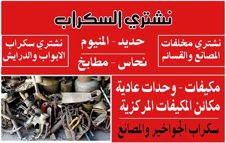 نشتري السكراب والأجهزة الكهربائية ثلاجات العرض والوحدات مكيفات الشباك ومطابخ الامنيوم والاستيل والأبواب والدرايش والحديد والنحاس وجميع أنواع السكراب بأعلى سعر
